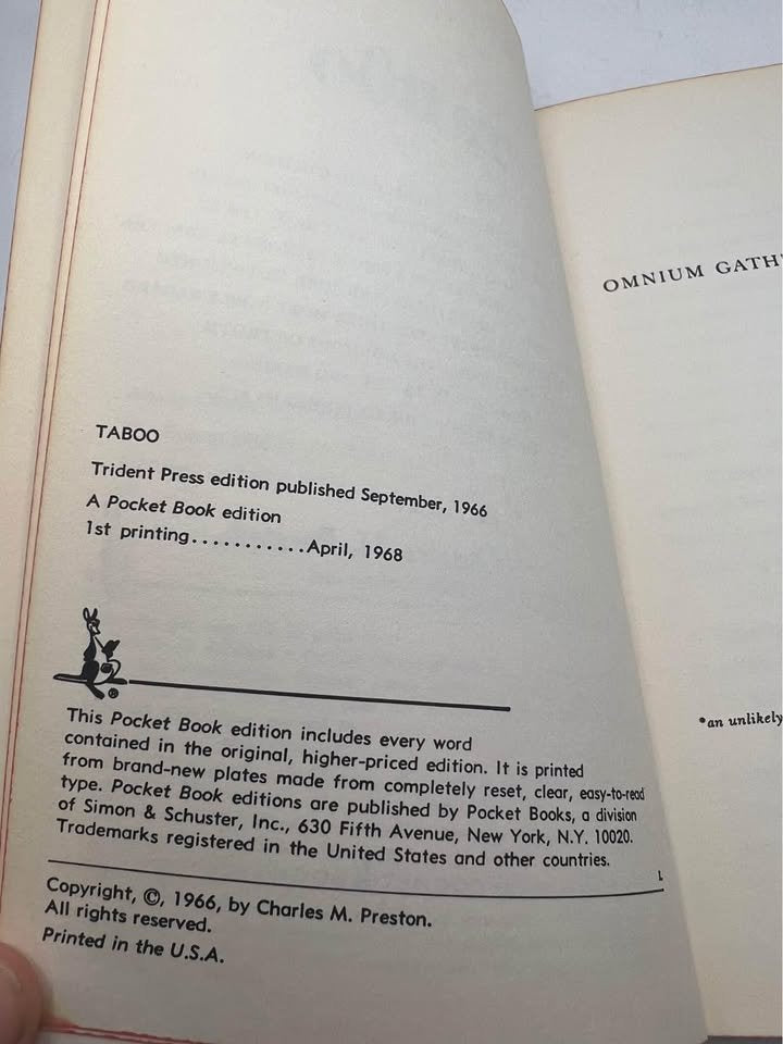 1968 Taboo by Charles M Preston Vintage Paperback Book