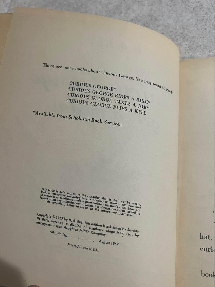 Curious George Gets A Medal by H. A. Rey Vintage Scholastic Paperback Book 1957 / 1967