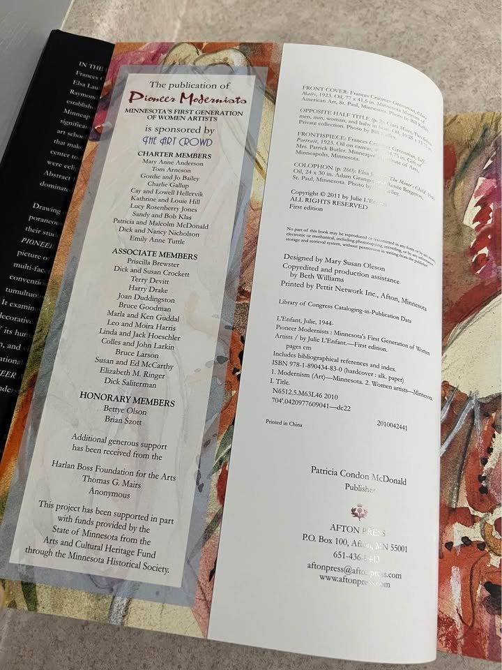 Pioneer Modernists Minnesotas First Generation of Women Artists Julie L'Enfant Hardcover Book 2011