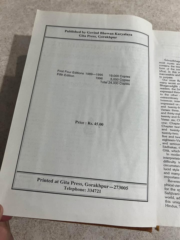 Srimad Bhagavadgita Sadhaka Sanjivani by Swami Ramsukhdas Hardcover Book 1996